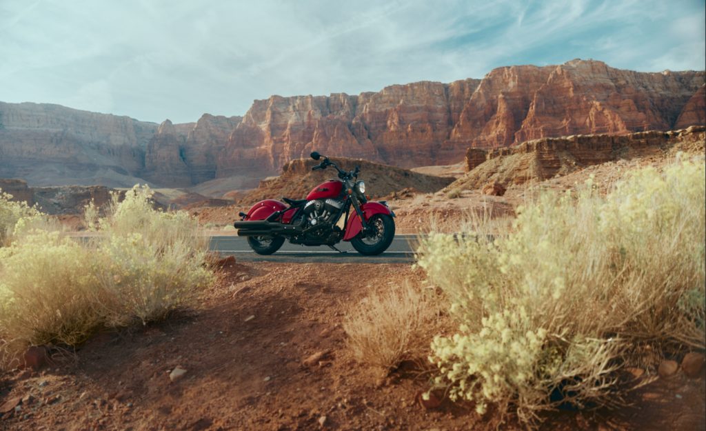 valanced fenders and unmistakable silhouette pay tribute to Indian Motorcycle’s roots, while the