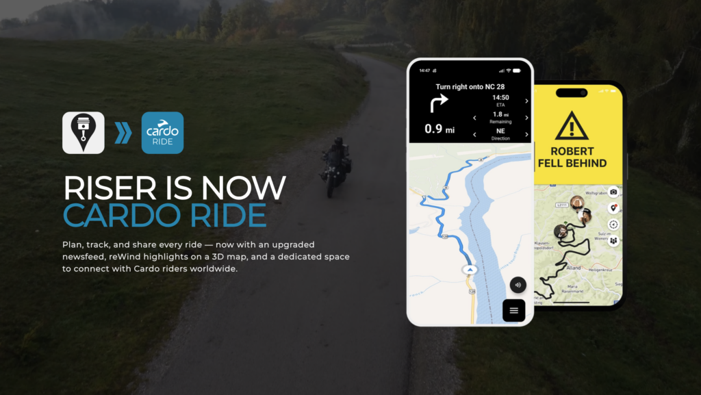 Existing RISER Powered by Cardo users will transition seamlessly to the new Cardo Ride app, with profiles, ride history, and community connections fully preserved.