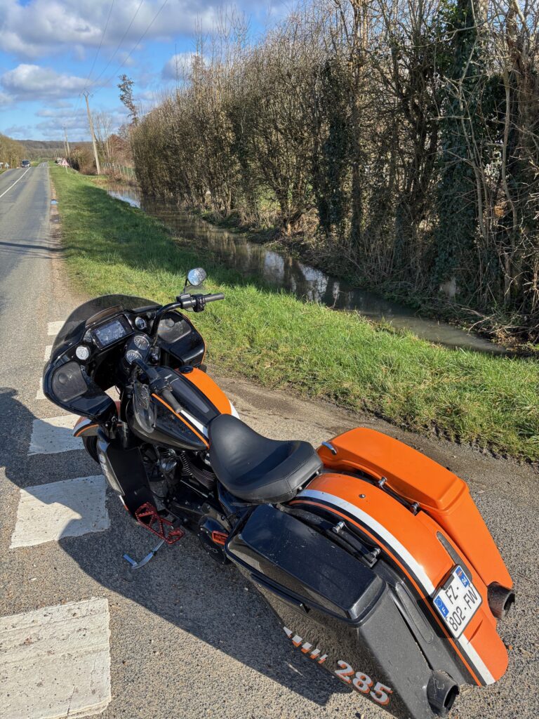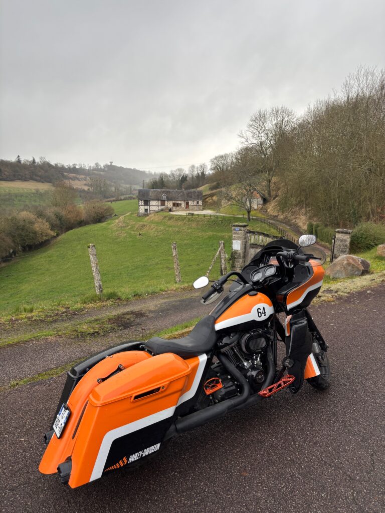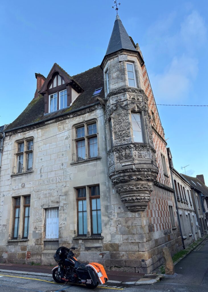 A full stomach and caffeine in the blood, suddenly my brain started working more or less properly again. So I began to envision what my day might hold: going back to photograph the Tiger, passing through the village where the famous and world-renowned Camembert cheese was born, speeding to the Harley dealership in Caen (due west), and returning to Paris via the little routes before nightfall (and the snow). A wonderful day was taking shape!