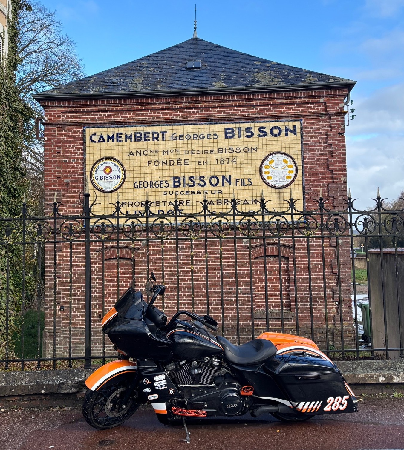 A full stomach and caffeine in the blood, suddenly my brain started working more or less properly again. So I began to envision what my day might hold: going back to photograph the Tiger, passing through the village where the famous and world-renowned Camembert cheese was born, speeding to the Harley dealership in Caen (due west), and returning to Paris via the little routes before nightfall (and the snow). A wonderful day was taking shape!