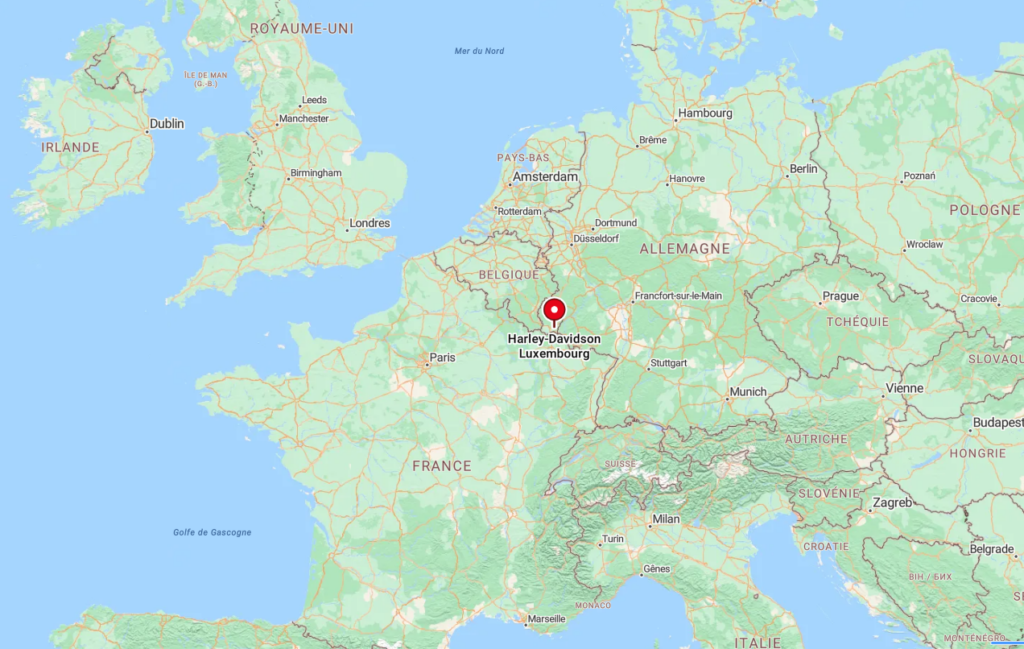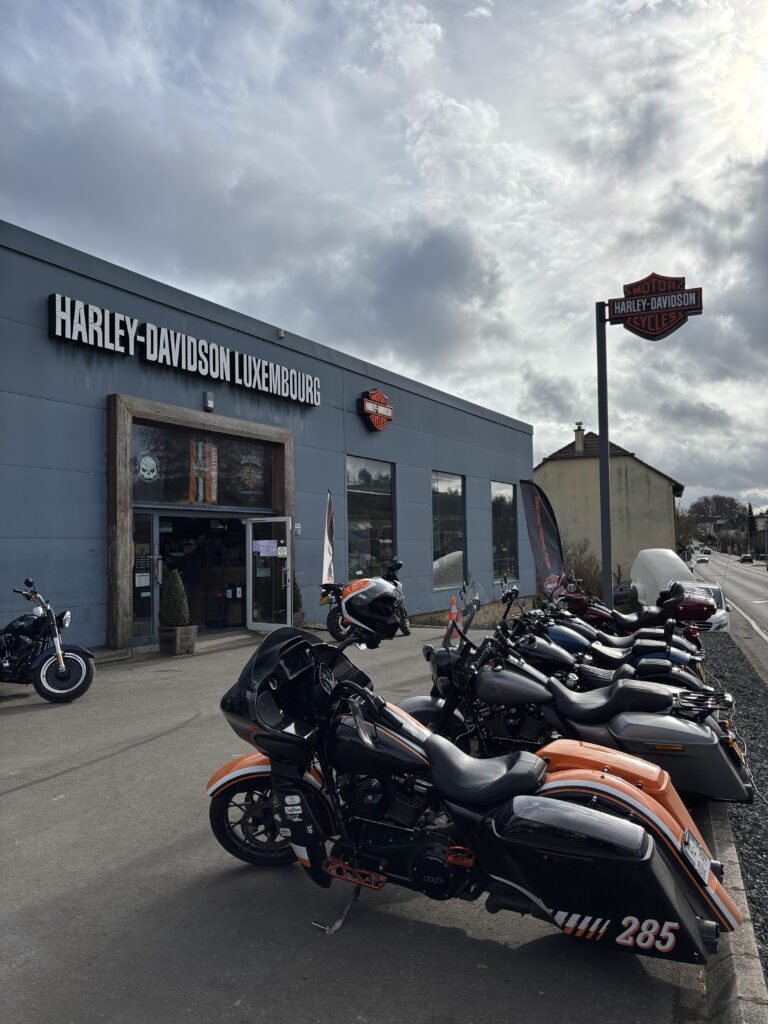 The next day, a 300 km / 190 miles ride allowed me to reach Harley Davidson Luxembourg in the small town of MOUTFORT (see: Site officiel Harley-Davidson | Harley-Davidson LU).