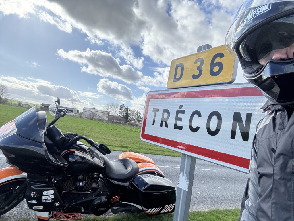 …I stopped for the traditional photo of my motorcycle in front of the sign announcing the small village of TRECON (I have a photo of almost all my motorcycles with this signal) In French TRECON sounds literally like “very stupid”. Yes I know, I know, it’s … very stupid to stop especially here to take this photo. But every time, it makes laugh. So, it’s ultimately a good reason to do it.