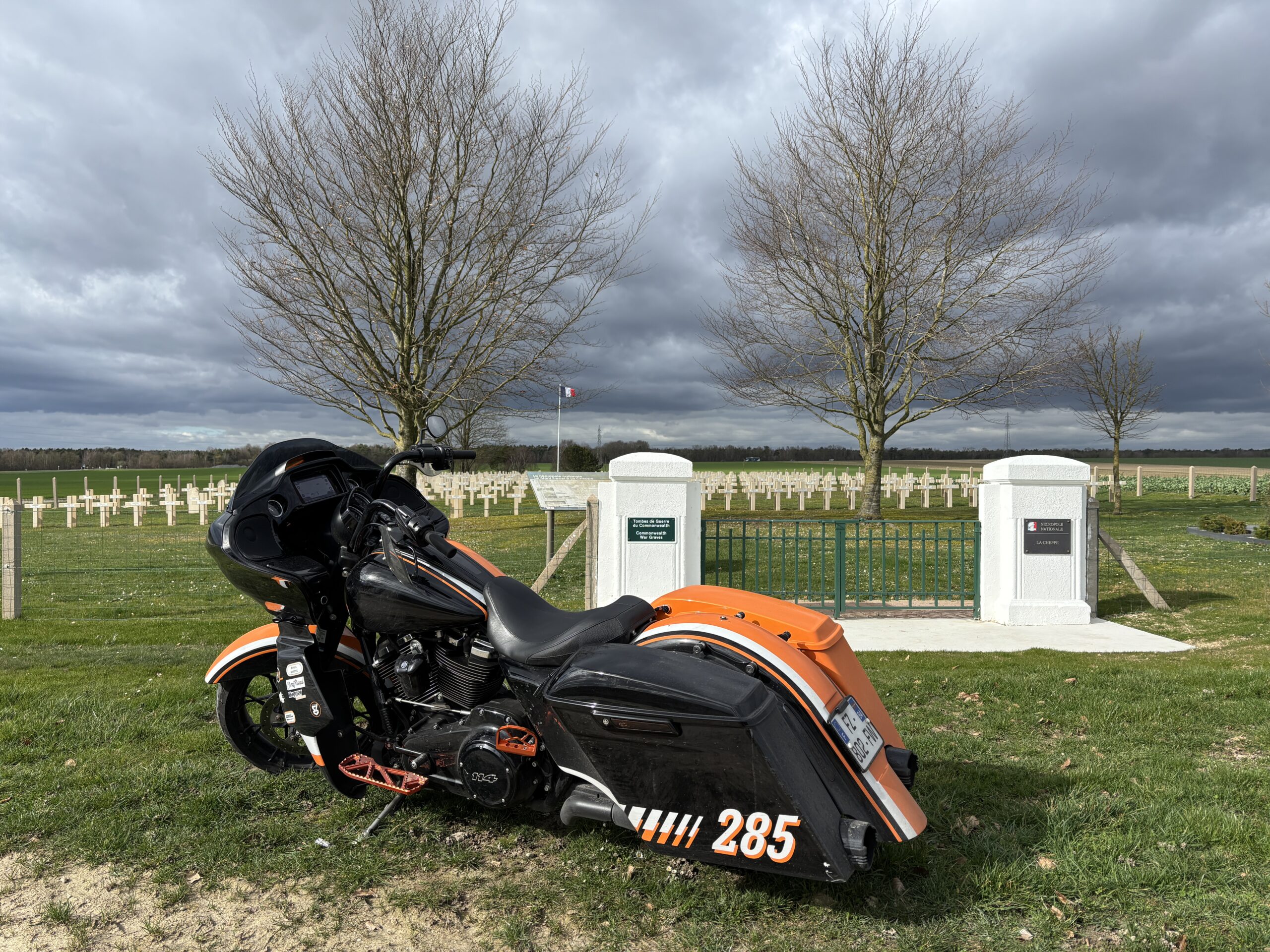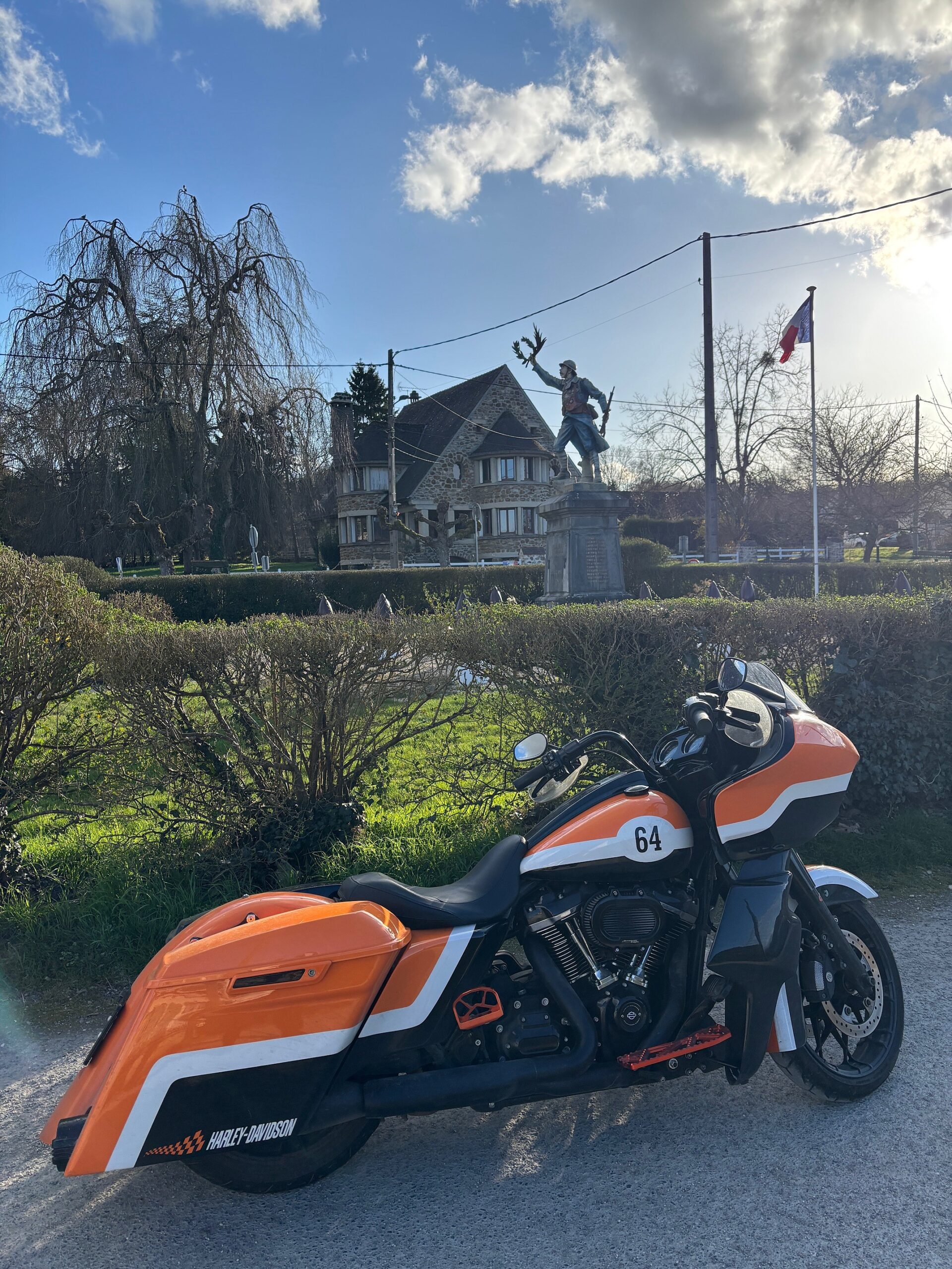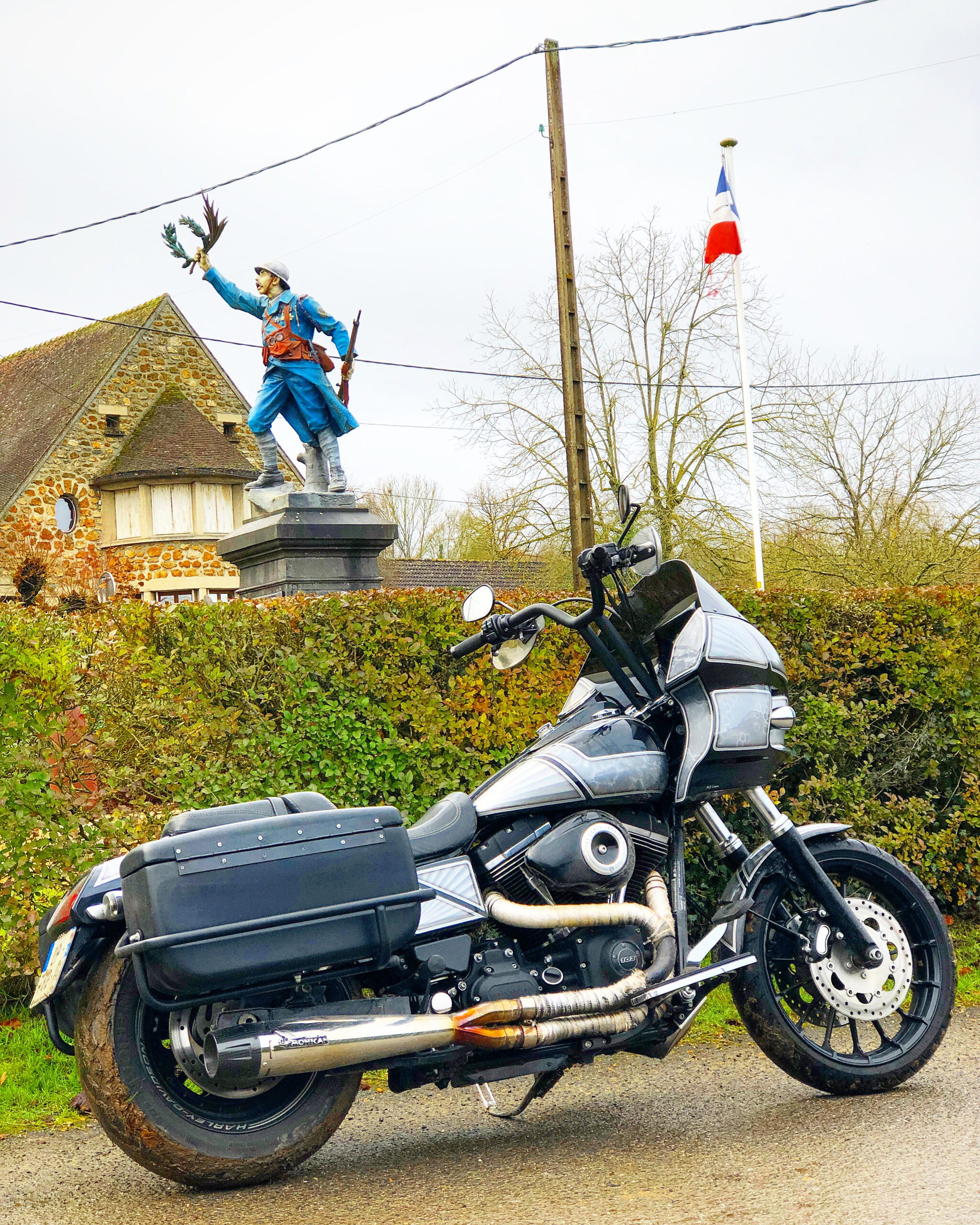 One last stop awaited me before returning home. I absolutely wanted to stop in the small village of BELLOT where there is a very pretty war memorial that has been colored after first World War. I hadn’t stopped here for years and I remembered the pretty colors of this sculpture. The last time I came here, I was riding my beloved gray club style Fat Bob.